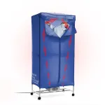 Asciugatrice elettrica portatile a 2 altezze (1200 W) ideale per stendere e asciugare i panni in modo rapido ed efficace, sterilizzando ed eliminando gli odori. Dotata di 6 supporti per grucce, timer regolabile, ruote girevoli e custodia esterna con zip estraibile e lavabile.